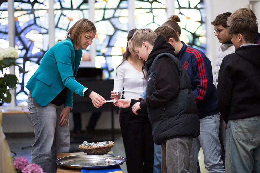In der bis auf den letzten Platz gefüllten Johanneskirche haben Schülerinnen und Schüler, Lehrerinnen und Lehrer sowie Eltern gemeinsam gebetet, gesungen und sich die Hand gereicht als Zeichen der Versöhnung und des friedlichen Miteinanders über Grenzen hinaus. Symbolisch wurden mit der Bitte für den Frieden in der Welt von den deutschen und französischen Schülerinnen und Schülern, die in diesem Jahr am Austausch teilnehmen Kerzen angezündet.