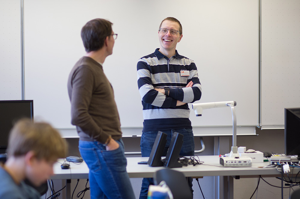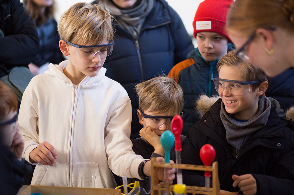Danach gab es in der Schule vielfältige Möglichkeiten für die künftigen Gymnasiasten, selbst an Spielen teilzunehmen, in Werkstätten auszuprobieren oder auch künstlerisch tätig zu werden: In den Naturwissenschaften konnte man beispielsweise hautnah miterleben, wie interessant Biologie, Physik und Chemie sein können, in den Informatikräumen führte die Roboter-AG ihren Arbeitsstand vor, das „Ensemble Kunterbunt“ und der „Jugendchor“ luden mit öffentlichen Proben zum Verweilen ein, die Schach-AG zeigte ihr Können und bei Strategiespielen mit den ViertklässlerInnen bewiesen SechtklässlerInen, dass Mathematik gar nicht so trocken sein muss, wie die meisten sich das vorstellen.