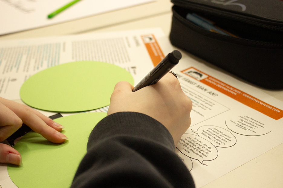 Am Ende des Tages konnten die Schülerinnen und Schüler den Tag reflektieren und ein Feedback geben. Die Aussagen wurden auf blauen Zetteln festgehalten, die gesammelt und als Gesamtbild die Wand im Foyer schmücken werden.