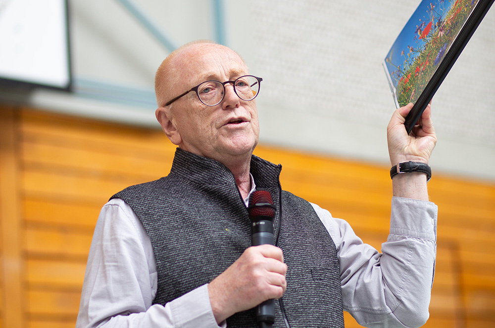 Nach dem Dankeschön der SV sprach Wolfgang Rensinghoff, der wohl engste Kollege von Franzis Niehoff an der Loburg. In seinem Rückblick auf die viereinhalb Jahre ging er von der Frage aus, warum sie ein Segen für uns war. Sie sei als Person ein Segen gewesen, in der Weise, wie sie das Leben in den Gottesdiensten zur Sprache gebracht habe, oft an ihre eigenen Erfahrungen anknüpfend. Ein Segen seien ihre kleinen und großen Aktionen gewesen, wie die Einrichtung des Soul Cafés, ihr Einfluss auf die Loburger Exerzitien, und vor allem seien das die unendlich vielen Gespräche mit Schülerinnen und Schülern gewesen, denen sie zugehört und denen sie „Spuren gelegt“ habe, um einen Weg aus ihren Problemen zu finden.