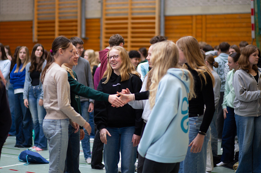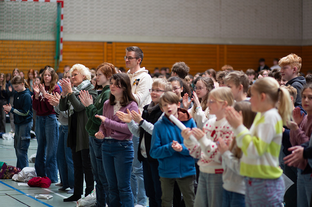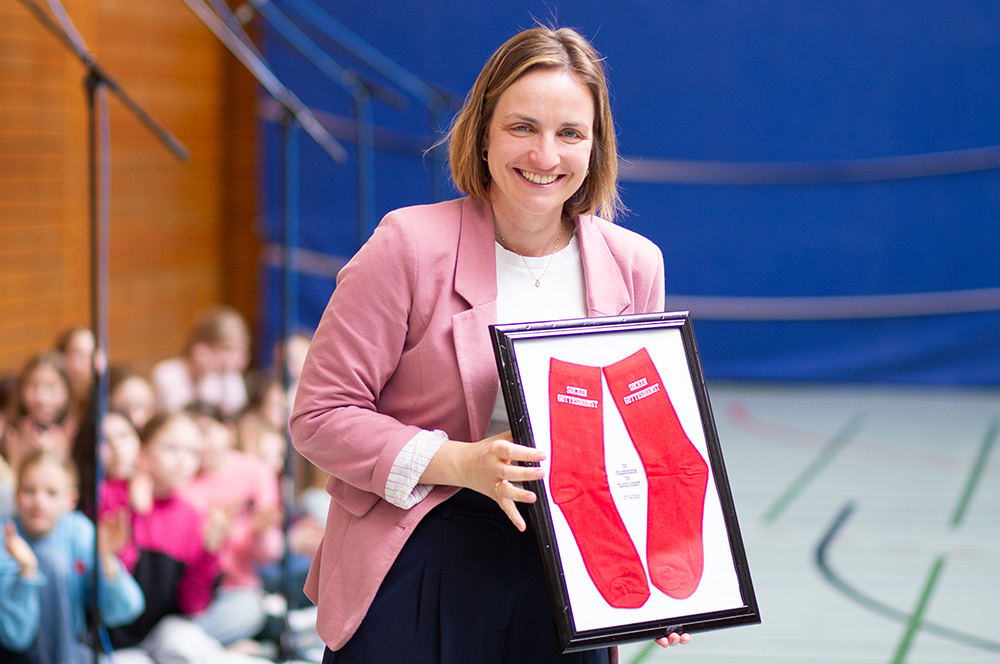 Am Freitag vor den Osterferien feierten wir einen „Sockengottesdienst“ in der Sporthalle anlässlich der Verabschiedung unserer Schulseelsorgerin Franzis Niehoff nach viereinhalb Jahren an der Loburg.