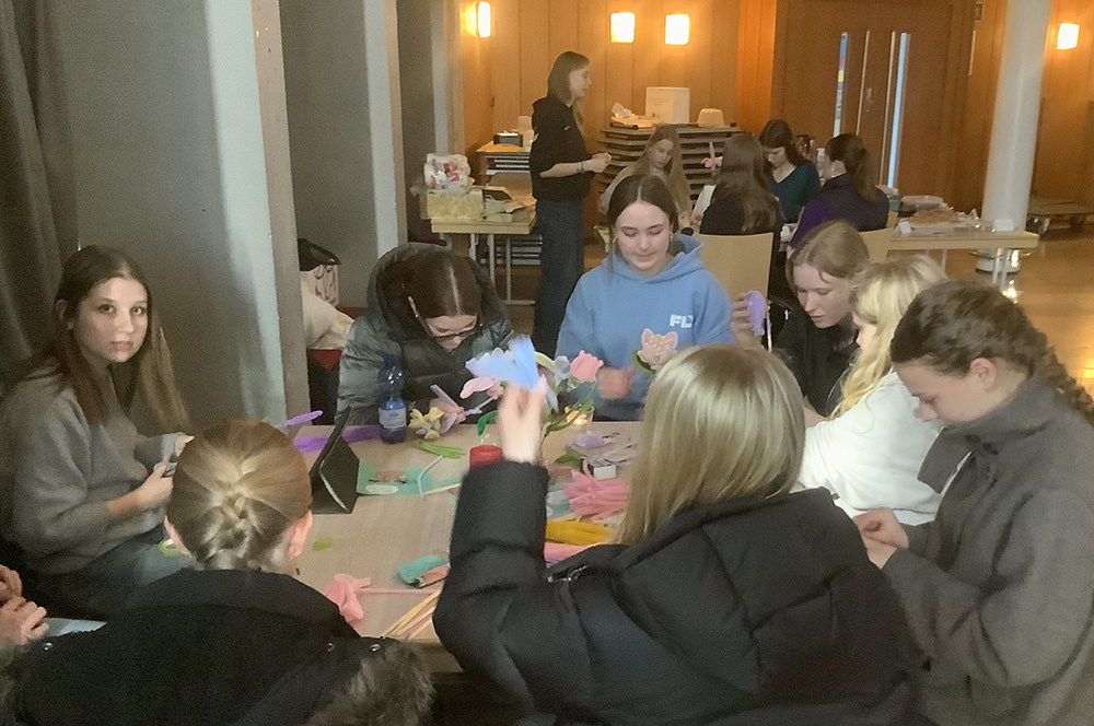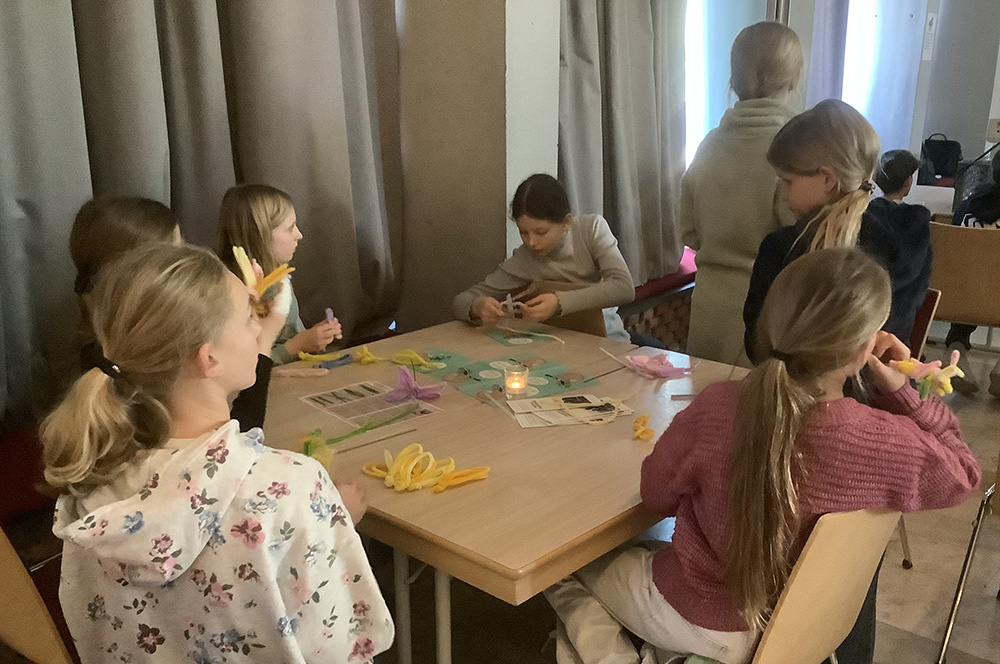 Ein besonderes Angebot war das Basteln von Blüten aus Pfeifenputzern, dabei entstanden sehr kreative, farbenfrohe Blumen.