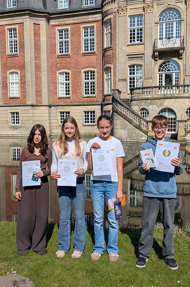 Alle Teilnehmerinnen und Teilnehmer haben großartige Leistungen gezeigt. Besonders hervorzuheben sind die Beiträge von Saman Khairi, Noah Lüffe und Lia Otte (jeweils Platz 1), Jonte Flaute und Franziska Kampherm (Platz 2) sowie Leni Hirsch, Mia Mietke und Lisbeth Stricker (Platz 3). Félicitations à tous!