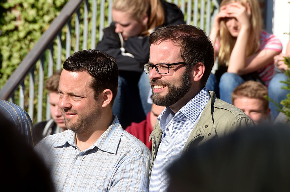 Schülerinnen und Schüler wurden von Schulseelsorger Wolfgang Rensinghoff bei bestem Wetter in die Ferien geschickt.