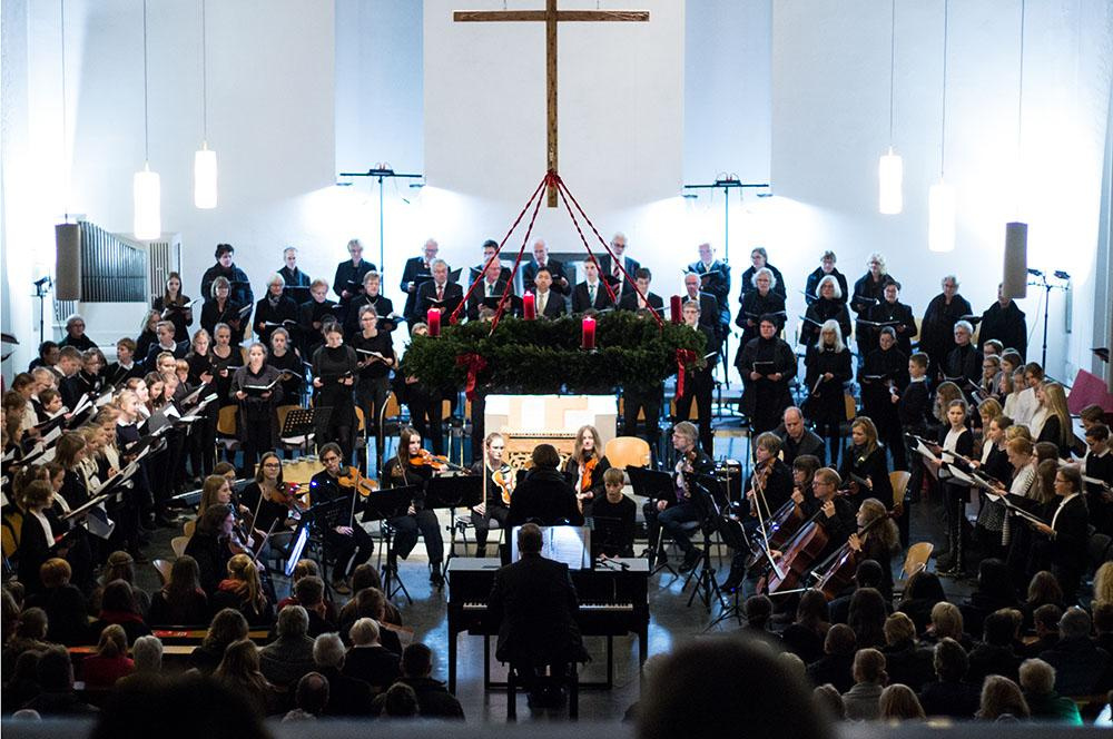 Gleich zu Beginn schuf der Unterstufenchor mit den Liedern „Volk in der Wüste“ und „Das Licht einer Kerze“ eine entspannte Atmosphäre und ließ das Publikum den vorweihnachtlichen Stress vergessen. Die Capella Loburgensis nahm das adventliche Motiv auf und brillierte vor allem mit dem Lied „Machet die Tore weit“. Die Gruppe Kunterbunt spielte zunächst „Water Music“ von G.F. Händel und leitete mit „Jingle Bells“ zum Unterstufenchor über, der danach mit der Capella zusammen „Sage, wo ist Bethlehem“ in der Bearbeitung von Matthias Hellmons zu Gehör brachte. Nach dem „Orchesterquartett C-Dur“ gespielt vom Kammerorchester, gab es neben den bekannten Melodien „Maria durch ein Dornwald ging“ und „O Heiland, reiß die Himmel auf“ auch das weniger bekannte „Stimmet Hosianna an“ zu hören, bis der adventliche Teil mit dem gemeinsam gesungenen Lied „Kündet allen in der Not“ endete.