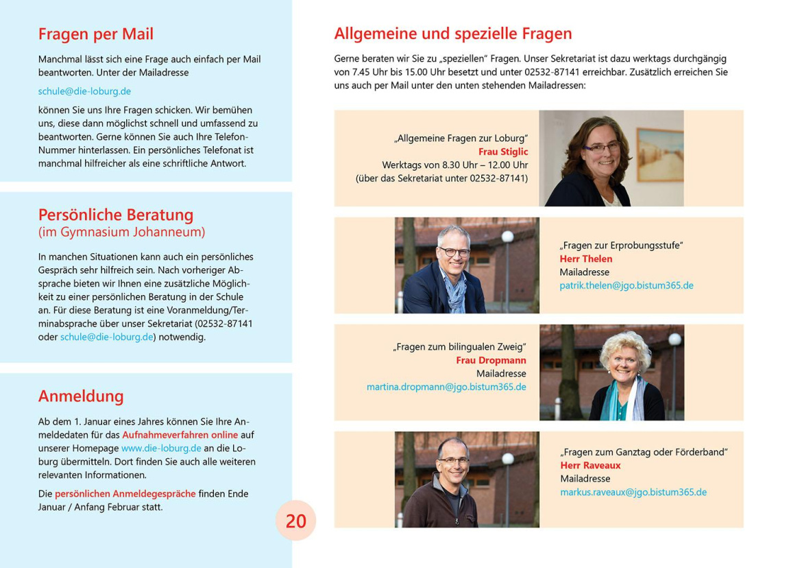 Zudem stehen Ihnen bereits jetzt digitale Informationsmöglichkeiten über das Gymnasium Johanneum und die Einschulung in die Klasse 5 auf unserer Homepage zur Verfügung, u.a. in der Einladung zum Informationstag ( Infobroschüre 2025) oder in unserer Broschüre „Willkommen an der Loburg!“. Aktuelle Aktivitäten der Loburg und aus dem Schulleben finden Sie darüber hinaus hier auf unserer Homepage oder auf Instagram unter „die.loburg“.