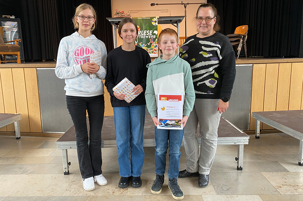 Es gehört sicher eine Portion Mut dazu, wenn sich die drei KlassensiegerInnen aus der Jahrgangsstufe 6 vor ihren versammelten MitschülerInnen sowie der Jury in der Aula vors Mikrofon setzen, um zunächst einen vorbereiteten und in der zweiten Runde einen fremden Text vorzulesen. Dies taten die drei diesjährigen KandidatInnen Nick Leon (6a), Kimberly (6b) und Marleen (6c) mit Bravour. Am Ende kam die Jury nach langer Beratung zu einem Ergebnis, das denkbar knapp war. Aber feststeht: Der Sieger des Wettbewerbs und damit bester Vorleser in diesem Jahr ist Nick Leon aus der 6a, der aus seinem Buch „Mysterium- der schwarze Drache“ besonders spannend vorgelesen hatte. Nick Leon vertritt unsere Schule Anfang kommenden Jahres nun beim Kreisentscheid in Warendorf.