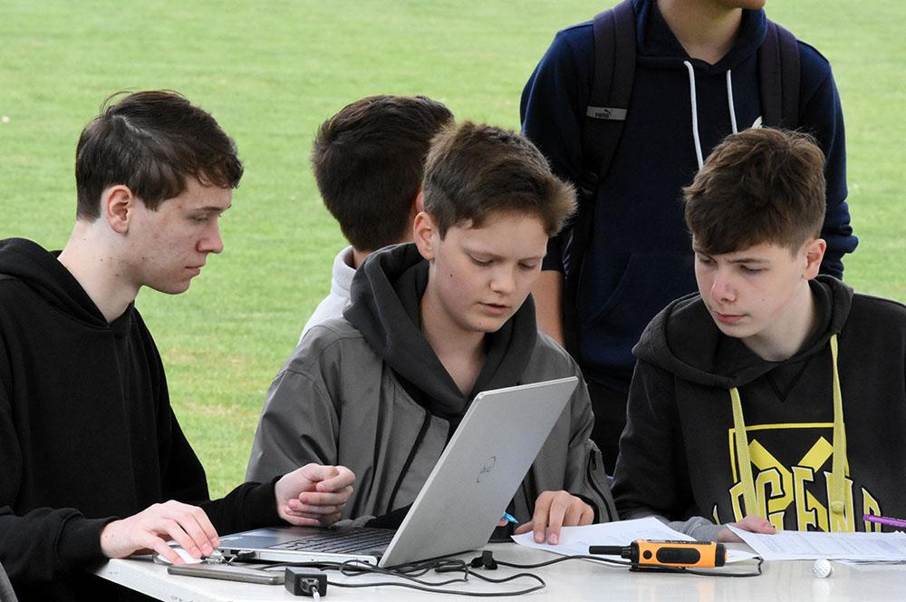 Auftakt eines sportlichen Tages bildeten die vier Disziplinen Weitsprung, Sprint, Langlauf und Wurf, die die Jahrgangsstufen 5 bis 9 im Klassenverband absolvierten. Unterstützt und motiviert durch die Schüler:innen der Jahrgangsstufe Q1 gaben die Mädchen und Jungen ihr Bestes. Unter all den starken Ergebnissen konnten sich diesmal besonders Max aus der 9d mit 1500 Punkten (und dem Tagesrekord von 12,5 sec. im 100m-Sprint) sowie Alissa aus der 9c mit 1427 Punkten (und dem Tagesrekord von 2:51 sec. auf 800m) auszeichnen. Aber wie erfolgreich auch immer: Letztlich ist das Dabeisein alles, denn es kommt auf den Spaß an der Sache und das Gemeinschaftserlebnis an.