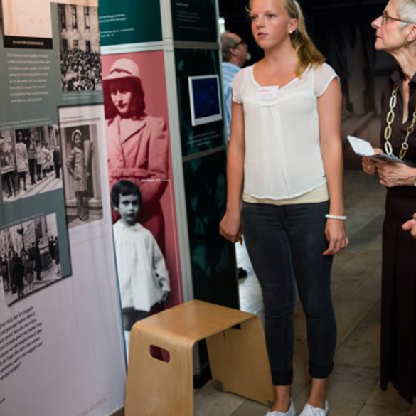 Das persönliche Schicksal der Jüdin Anne Frank, die mit ihrem Tagebuch, geschrieben im Amsterdamer Versteck, berühmt wurde und mit nur 15 Jahren im KZ Bergen Belsen starb, steht im Mittelpunkt der Ausstellung.