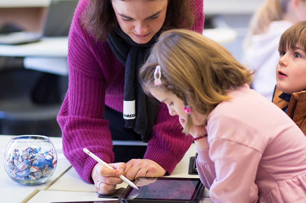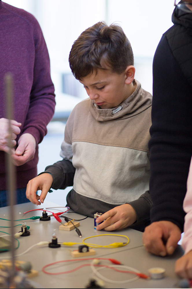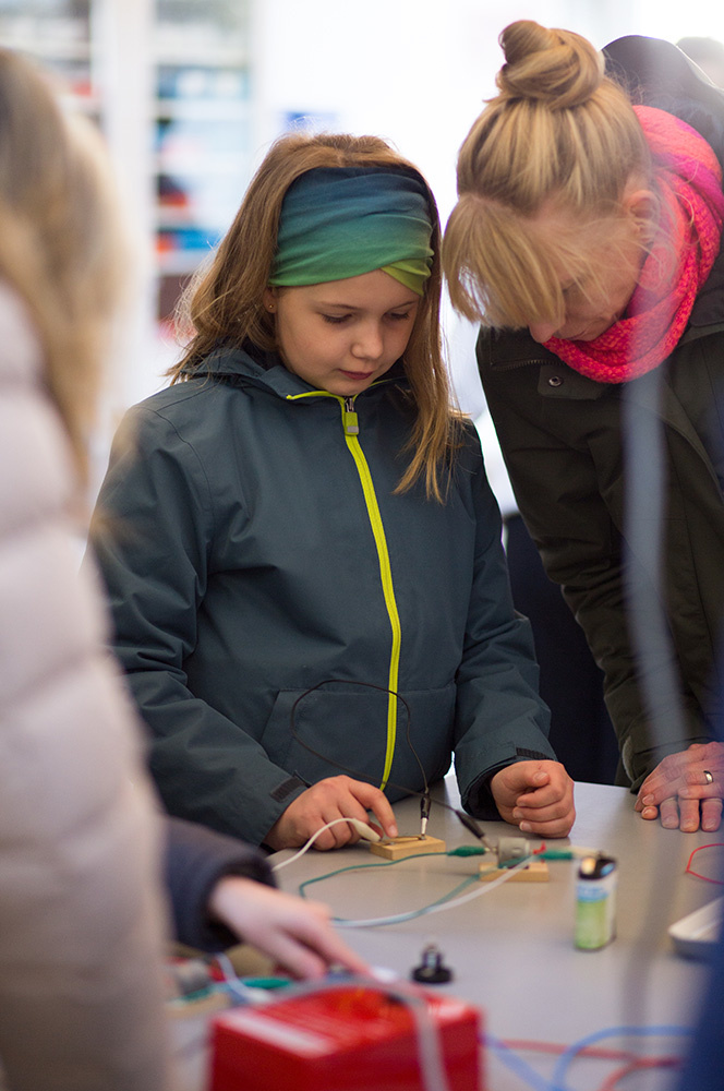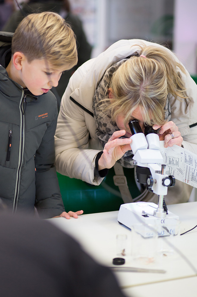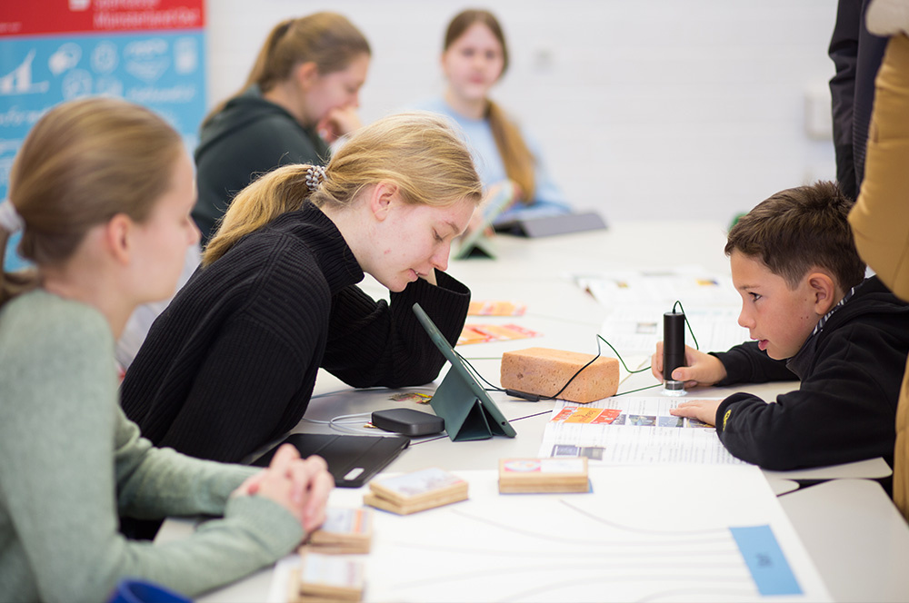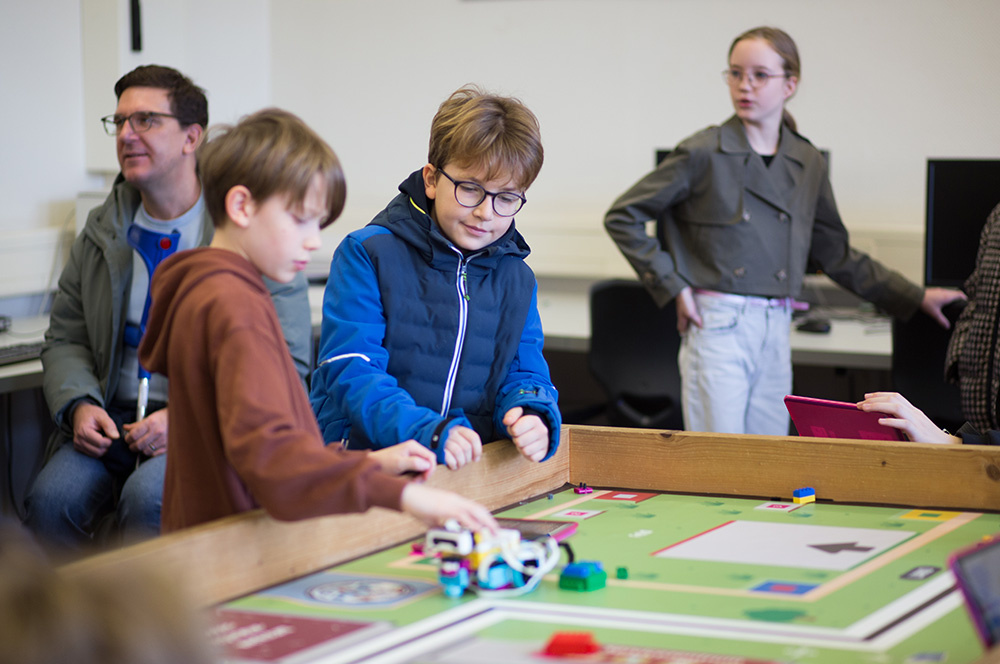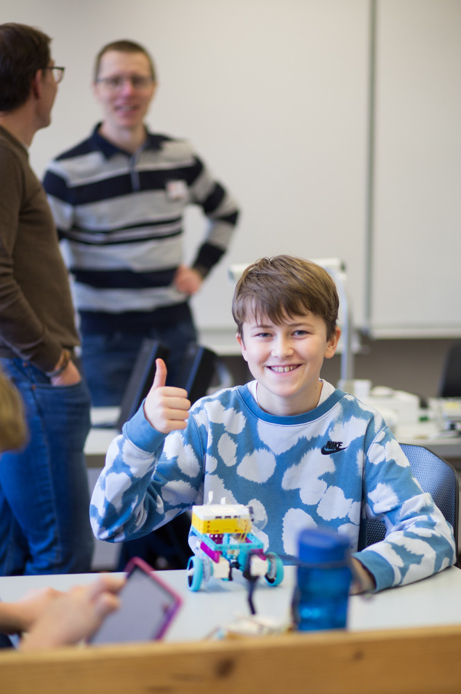 Danach gab es in der Schule vielfältige Möglichkeiten für die künftigen Gymnasiasten, selbst an Spielen teilzunehmen, in Werkstätten auszuprobieren oder auch künstlerisch tätig zu werden: In den Naturwissenschaften konnte man beispielsweise hautnah miterleben, wie interessant Biologie, Physik und Chemie sein können, in den Informatikräumen führte die Roboter-AG ihren Arbeitsstand vor, das „Ensemble Kunterbunt“ und der „Jugendchor“ luden mit öffentlichen Proben zum Verweilen ein, die Schach-AG zeigte ihr Können und bei Strategiespielen mit den ViertklässlerInnen bewiesen SechtklässlerInen, dass Mathematik gar nicht so trocken sein muss, wie die meisten sich das vorstellen.