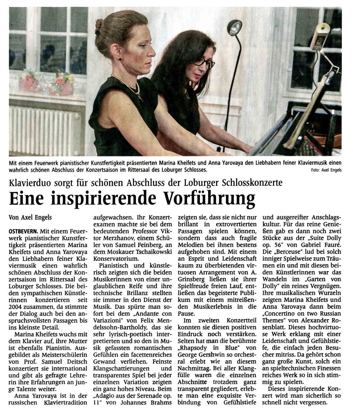 Klavierduo sorgt für schönen Abschluss der Loburger Schlosskonzerte