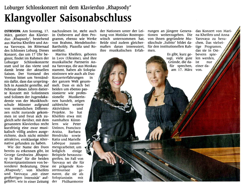 Loburger Schlosskonzert mit dem Klavierduo "Rhapsody"