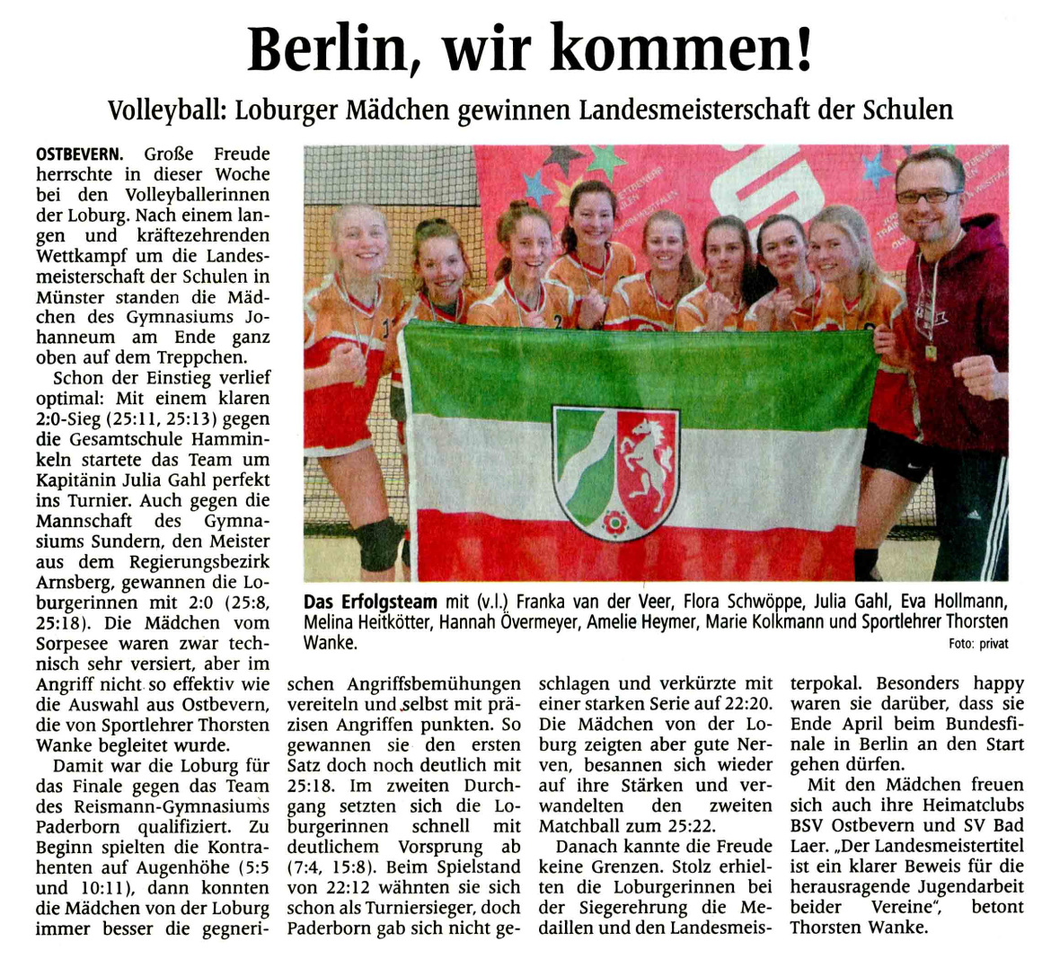 Volleyball: Loburger Mädchen gewinnen Landesmeisterschaft der Schulen