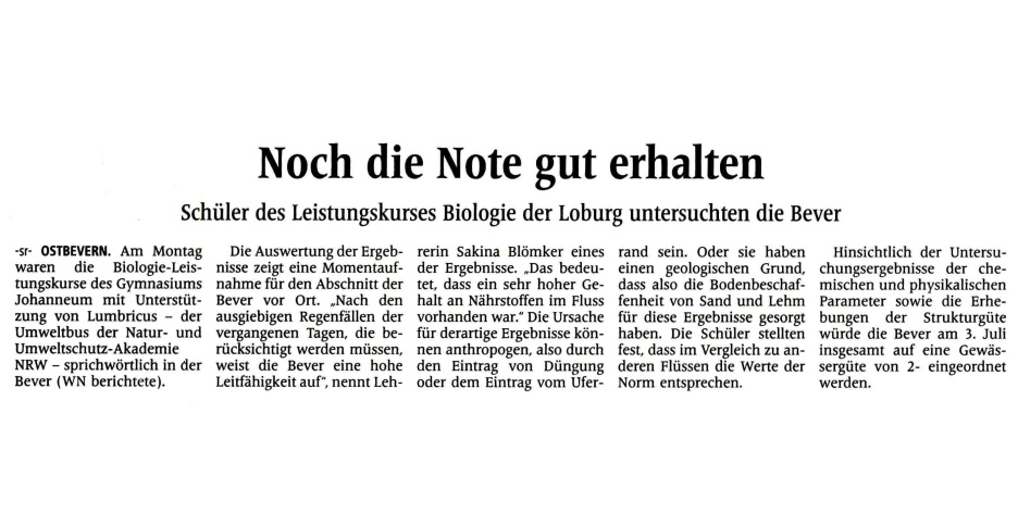 Die Leistungskurse Biologie überprüften den ökologischen Stand der Bever mit Hilfe des Umweltbus