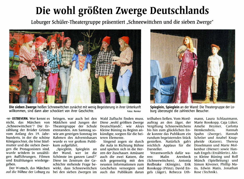 Loburger Schüler-Theatergruppe präsentiert "Schneewittchen und die sieben Zwerge"