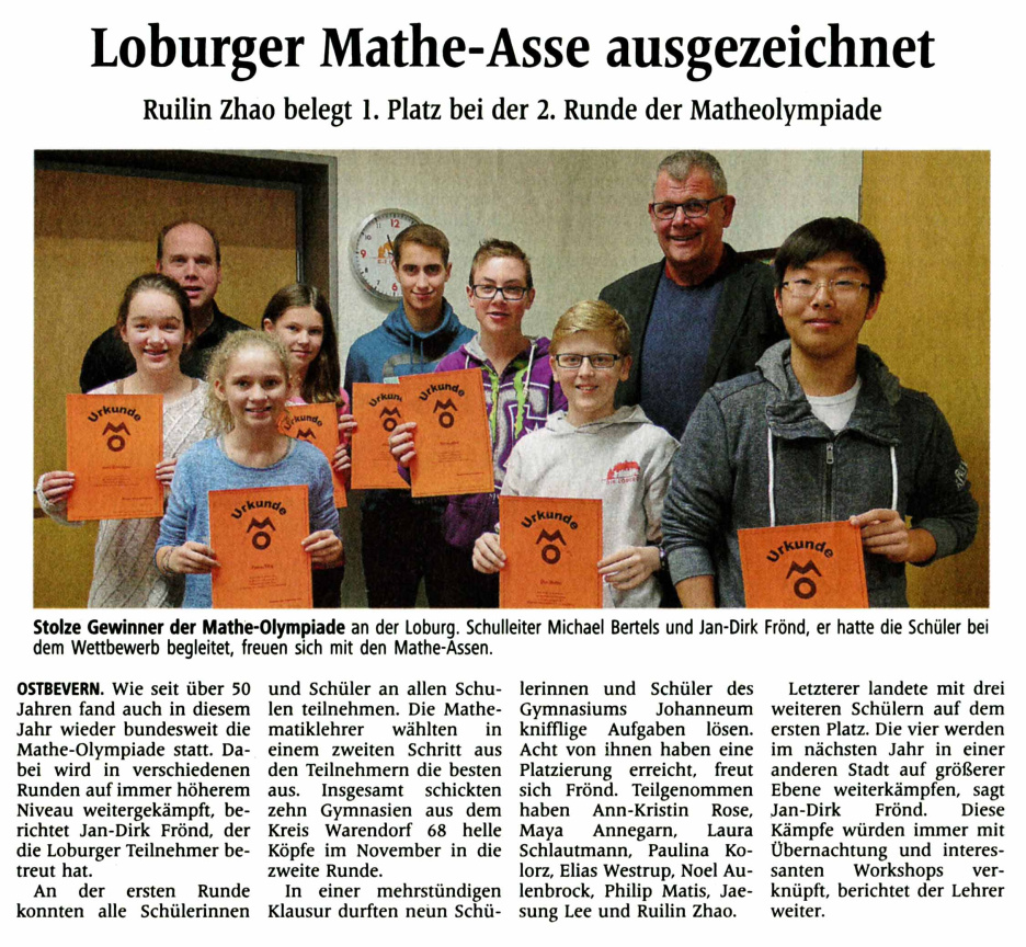 Ruilin Zhao belegt 1. Platz bei der 2. Runde der Matheolympiade