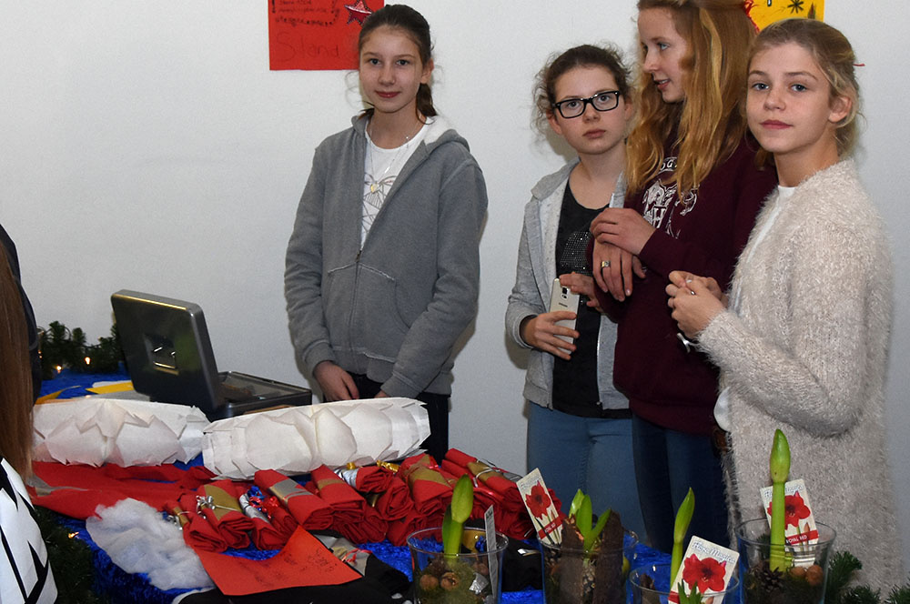 Ein herzliches Dankeschön möchten wir allen Besuchern unseres Adventsbasars sagen. Durch Ihr Kommen zeigen sie Ihr Interesse und Ihre Wertschätzung für die Arbeiten der Schüler, die sich an vielen Stellen engagiert eingebracht haben. Durch den Verkauf weihnachtlicher Geschenke und aus den Erlösen der Cafeteria und des Theaters können wir, wie in den Vorjahren, wieder viele Projekte unterstützen und im Kleinen etwas Not lindern. Allen, die sich eingebracht haben, nochmals herzlichen Dank für die Unterstützung dieser guten Sache.