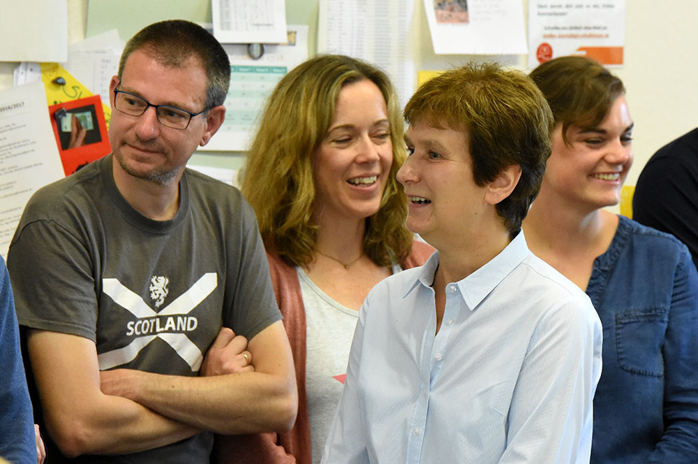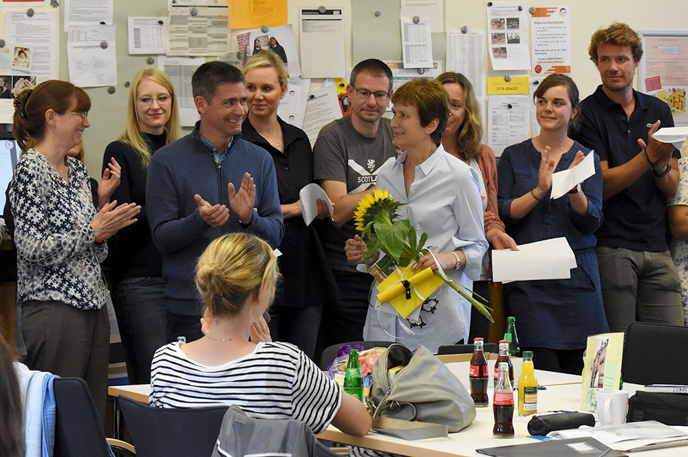 So verabschiedeten sich die Fachschaften von dem Genuss- und Kulturmenschen Marianne Grave-Wolf mit sehr persönlichen Geschenken, die gemeinsam mit der jeweiligen Fachschaft einzulösen sind. Auch ihre Sitznachbarinnen im Lehrerzimmer werden Frau Grave-Wolf als Freundin, mit der man Gespräche weit über den small-talk hinaus führen konnte, vermissen und luden sie, damit der Kontakt nicht abreißt, zu einem gemeinsamen Frühstück ein.