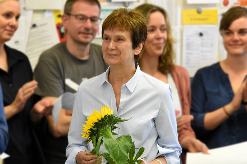 ..., schallte es nach der Zeugnisausgabe am 13. Juli im Lehrerzimmer, als sich das Kollegium versammelt hatte, um Marianne Grave-Wolf in den Ruhestand zu verabschieden.