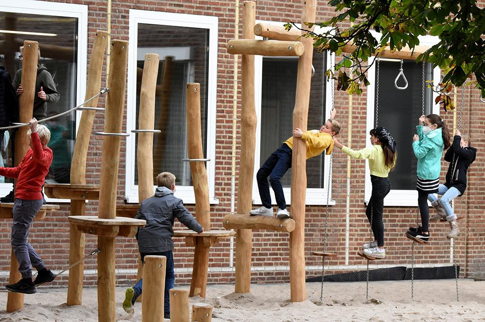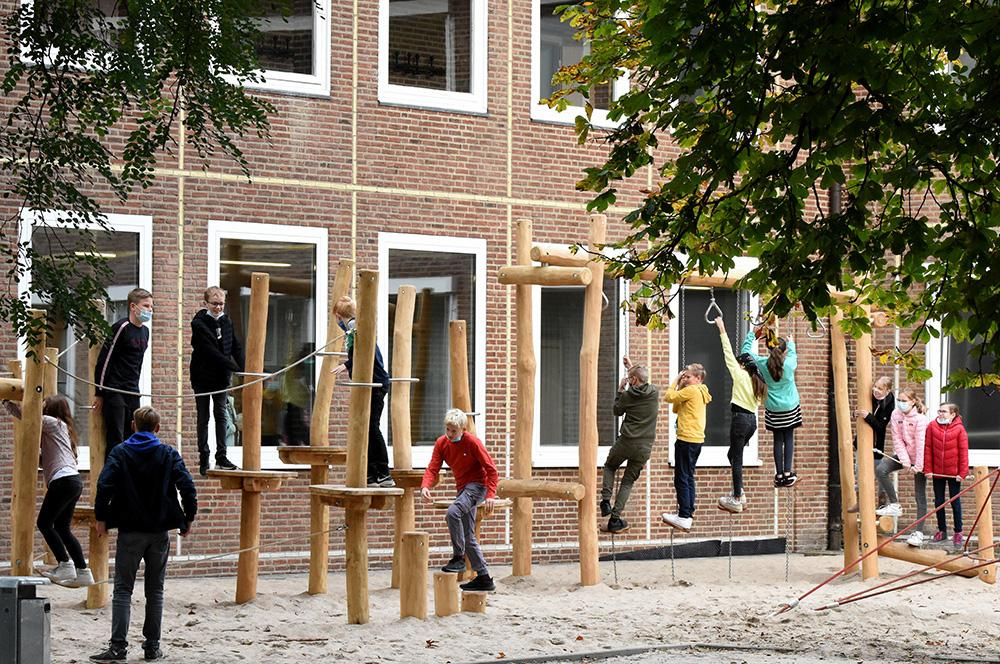 Das Ergebnis kann sich sehen lassen: Ein markiertes Fußballfeld, Tischtennisplatten, eine Kletterpyramide, Reckstangen, eine Schaukelanlage und nun der Blancier- und Kletterparcours. Einer bewegten Pause steht nun nichts mehr im Wege.