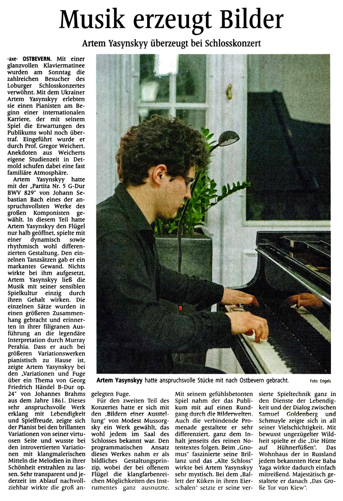 Klavierkonzert mit Artem Yasynskyy in der Loburg