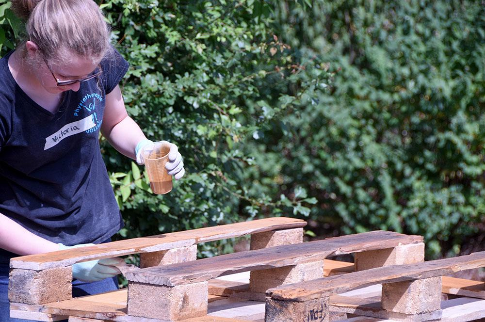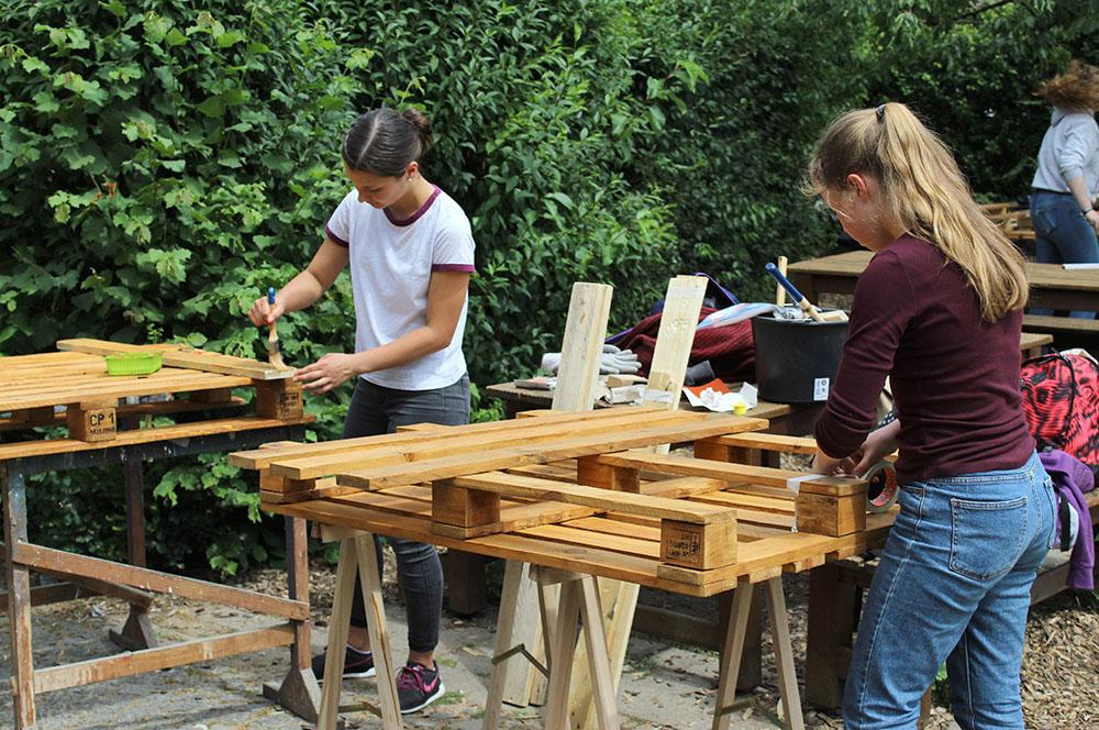 Upcycling-Möbel aus gebrauchten Paletten sind nachhaltig und voll im Trend. Das Tolle an einem Paletten-Kräuterbeet ist, dass man es ganz einfach selbst bauen und bepflanzen kann. So kann man Schnittlauch, Minze, Basilikum (oder was das Kräuterherz begehrt) platzsparend und stylisch auf der heimischen Terrasse oder dem Balkon gedeihen lassen. Mit den Schülern wird gemeinsam eine Kräuterpalette gebastelt, die man dann zuhause bepflanzt. Zu den auszuführenden Arbeiten gehört z.B. das Abschleifen und Lackieren der Paletten sowie das Anbringen von Teichfolie im Inneren der Pflanzkammern, damit das Palettenholz nicht faulig wird.