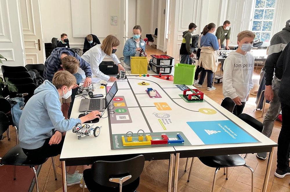 Nachhaltigkeit war das große Thema beim diesjährigen Roboterwettbewerb des ZDI im Kreis Warendorf an der Loburg. In drei Runden haben sich die von Schüler*innen der Jahrgangstufen 5 bis 9 entwickelten Roboter miteinander gemessen. So musste z.B. ein Car-sharing Auto auf seinen Platz zurückgebracht werden oder das alte Handy zum Recycling im Wertstoffhoff entsorgt werden. Gelungene Aktionen der Roboter wurden vor allem bei dem großen Team der “Lobotics” begeistert von den Mitschülern gefeiert. Leider klappte hier gerade in den ersten beiden Runden nicht alles, was sich die Schüler vorgenommen hatten.