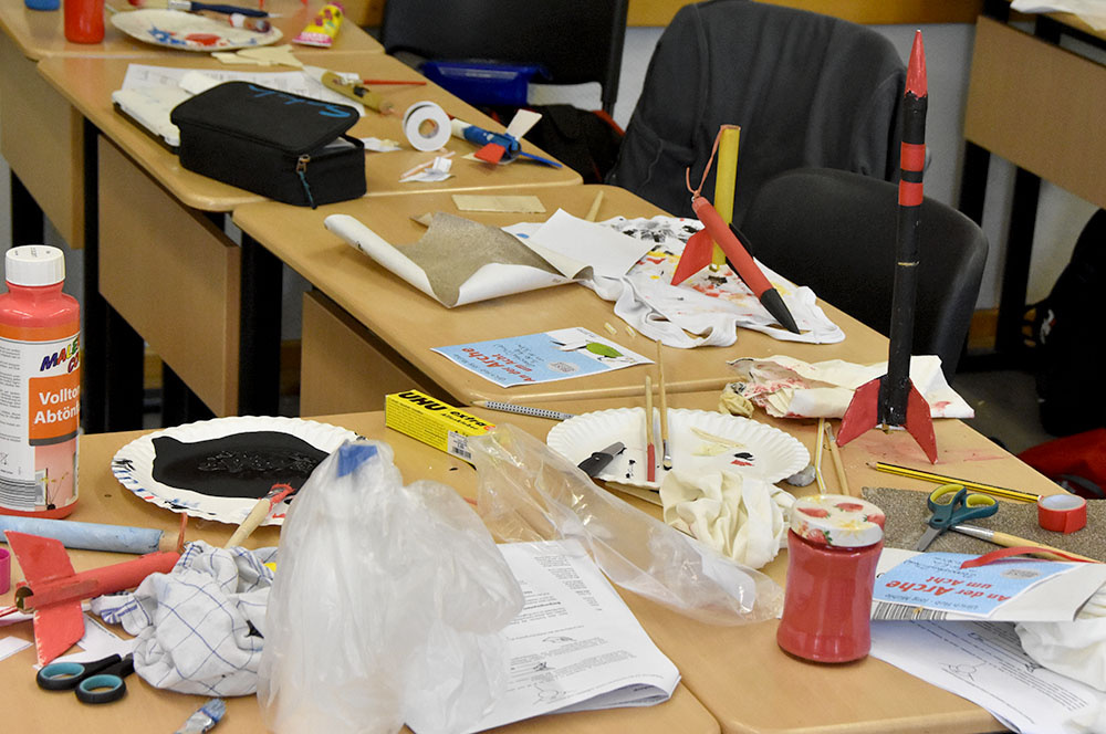 Diese Präsentationen spiegelten nur einige von rund 35 Projekten, mit denen sich Schülerinnen und Schüler beschäftigten. So wurden Raketen, Bumerangs und Flowersticks gebaut, der Minigolfplatz renoviert, mit Urban Knitting und Landart das Schulgelände verschönert oder gar das Schloss mit Hilfe von Minecraft nachgebaut. Die Umgebung wurde per Rad oder wandernd erkundet und bei Schlossopoly, der Entwicklung von Brettspielen rund ums Schloss einbezogen. Als Ergebnis aller Projekte, die präsentiert, ausgestellt oder aber in das Schulgelände integriert wurden, lässt sich eine beeindruckende Vielfalt festhalten, die die Loburg als Dreh- und Angelpunkt des Schullebens definiert.
