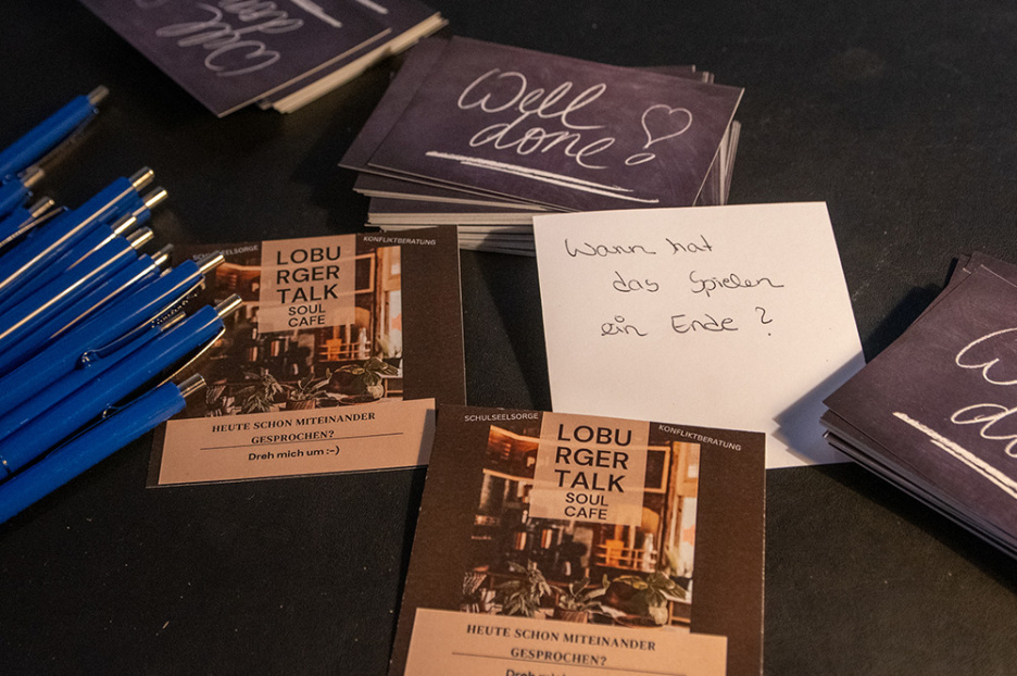 Auch einige aus dem Lehrerkollegium hätten das „Soul-Café“ aufgesucht, freut sich Sakina Blömker. Möglicherweise sei es nach dem Erfolg der Premiere denkbar, das Aula-Café samt Gesprächsimpulsen auch in anderen Kontexten einzusetzen, beispielsweise für Eltern während des Elternsprechtages.