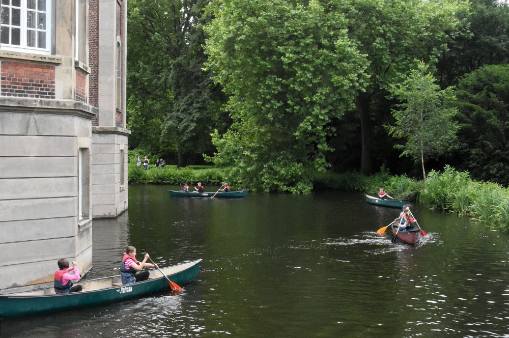 Abwechslung pur hieß es am letzten Samstag vor den Sommerferien bei unserem traditionsreichen Sommerfest der Loburg. Denn nicht nur das Wetter hielt einen Regen-Sonnen-Mix bereit sondern auch die Loburger ein vielfältiges Unterhaltungsprogramm aus Spiel, Sport und ganz viel Spaß etwa bei den verschiedenen Gewinnspielen auf dem Rasen, die vom Dosenwerfen über ein riesiges Spielemobil bis zum Glücksrad reichten und von hochmotivierten Kindern, Eltern und Klassenlehrern der Unterstufe betrieben wurden. Zwischen Bimmelbahn und Hüpfburg konnten Groß und Klein auch Kanu auf der Gräfte fahren, die hauseigene Football-Mannschaft (Beavers) anfeuern, eine Mäusefallen-Challenge verfolgen, motorisierte Mini-Autos steuern, Feuerwehr mit echten Feuerwehrmännern und deren Nachwuchs spielen oder Lehrer beim Dosenwerfen zu Fall bringen.