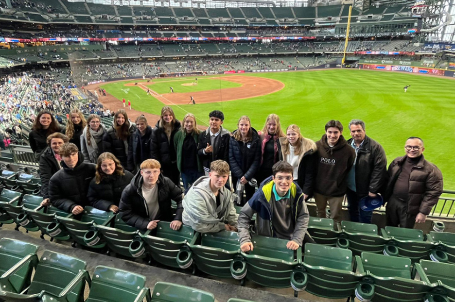 Am dritten Tag wurden wir mit einem Minibus abgeholt und begleitet von Schülern unserer Partnerschule St. Lawrence Seminary High School nach Mount Calvary, WI gefahren. Dort wurden wir freundlich von den anderen Schülern begrüßt. Nach einer kurzen Pause machten sie in Kleingruppen eine Tour über das Gelände mit uns. Ähnlich wie die Loburg, liegt auch die amerikanische Partnerschule sehr ländlich und die Schule erstreckt sich über mehrere Gebäude. Am Abend wurde von den amerikanischen Schülern ein Volleyballspiel organisiert. Der Sonntag begann nach dem Frühstück mit einer Messe und nachmittags besuchten wir – typisch amerikanisch - eine Shoppingmall in Appleton mit ein paar Austauschschülern. Am Montag stand dann ein ganzer Schultag auf unserem Programm. Wir besuchten wir den Unterricht in Kleingruppen. Nach einem weiteren Morgen mit Unterricht besuchten wir am Dienstagnachmittag Horicon Marsh, ein Naturschutzgebiet in der Nähe von Fond du Lac. Dort kann man vor allem Vögel beobachten. Am Mittwoch sind wir morgens zu einem professionellen Baseballspiel des lokalen Teams, den Milwaukee Brewers, die gegen die Detroit Tigers gespielt haben, gefahren. Bei dem Spiel gewannen die Milwaukee Brewers, was die baseballinteressierten Gastschüler sehr erfreute. Gründonnerstag hatten wir wieder den ganzen Tag Schule und abends gab es ein Bankett und die Messe zum letzten Abendmahl, die den Beginn der Heiligen Drei Tage markiert. Karfreitag fand keine Schule mehr statt, stattdessen nahmen wir vor der Messe an einer Präsentation zum Thema „Mit Jesus durch Schwierigkeiten gehen“ im Auditorium der Schule teil.