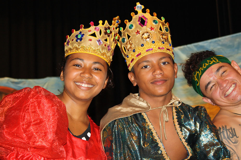 Die Schülerinnen und Schüler der Jahrgangstufen 7, 8 und 9 erlebten in dieser Woche zwei Stunden Brasilien pur. Im Rahmen des Kulturprogrammes waren die Kinder und Jugendlichen aus dem Projekt „Verde Vida“ (deutsch: „Grünes Leben“) aus Crato, im Nordosten Brasiliens an der Loburg zu Gast. Mit der Kinderkulturkaravane sind sie für zweieinhalb Monate in ganz Deutschland unterwegs um in Schulen und Gemeinden aufzutreten, die kulturelle Vielfalt Brasiliens zu zeigen, aber auch um auf die gesellschaftlichen Probleme des Landes aufmerksam zu machen.